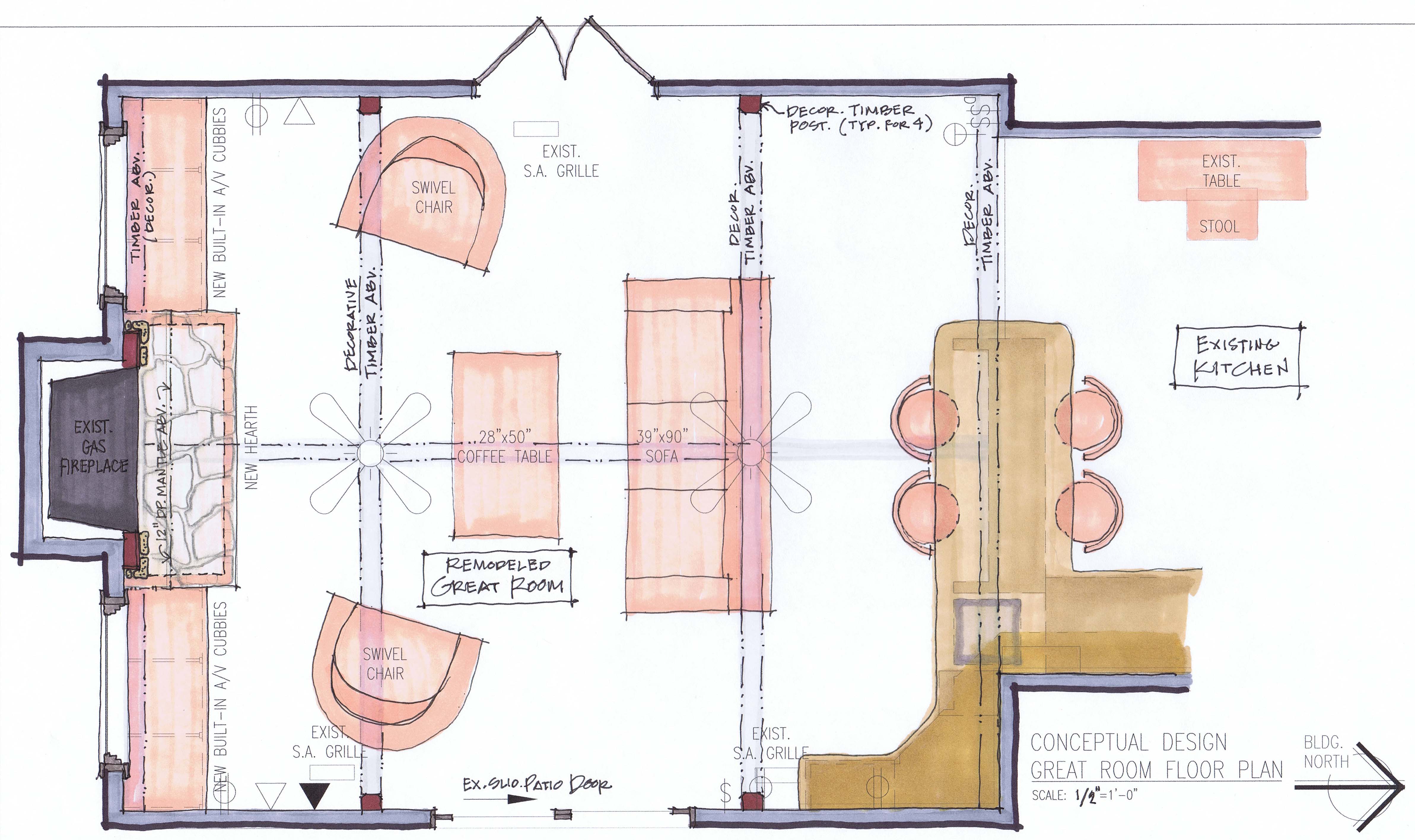 Proposed Fireplace Wall with A/V built-ins with Window & Cathedral Ceiling - Conceptual Design