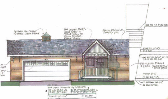 Proposed remodeling of 19th century farmhouse & new covered rear entry porch addition.